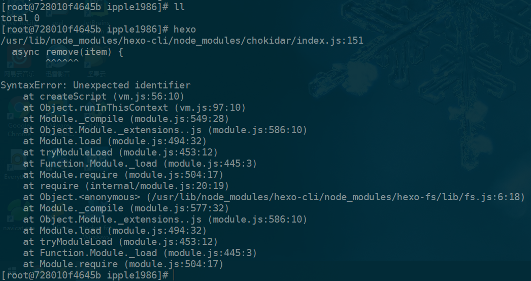 - 本着一切从简原则,直接搜了dockerhub,选了个最多下载的ipple1986/hexo ,发现直接拉取镜像是可以用的: